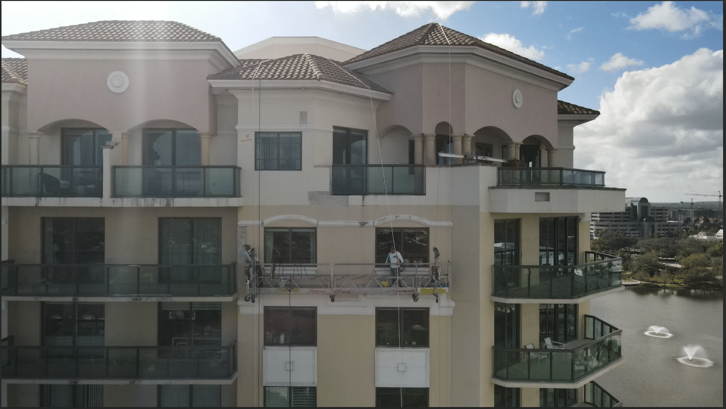 Scope: balcony and roof waterproofing,commercial exterior painting,Florida commercial property painting,large-scale commercial painting,Pompano Beach building restoration,stucco and concrete repairs