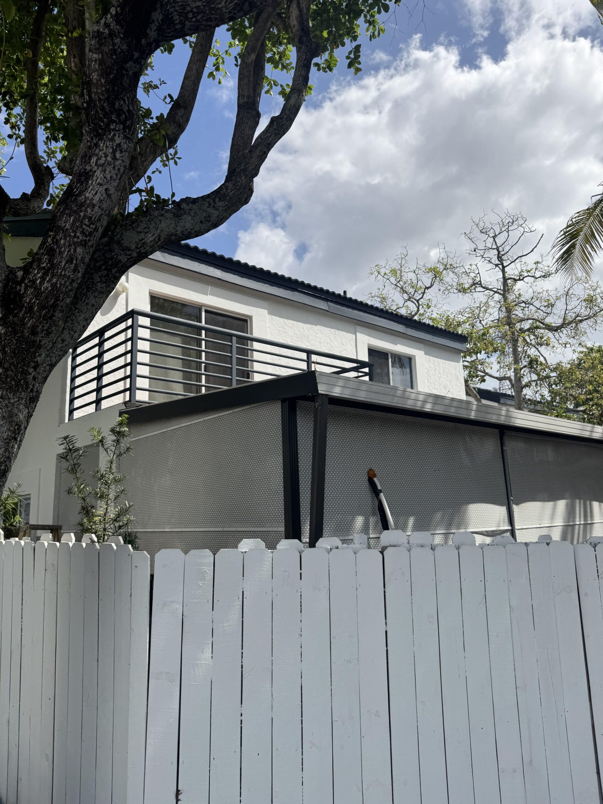 • Railing refinishing – front and rear: Sanding, priming, and repainting of all metal railings in the community-standard blue.